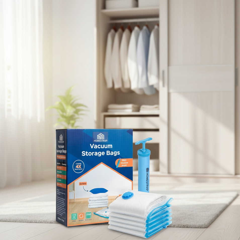 Perfect for seasonal storage, travel, or organizing your home, these 5 reusable vacuum bags are strong enough to withstand repeated use while maintaining their sealing performance. Whether you’re reducing wardrobe clutter, packing efficiently for a trip, or protecting your winter wear, these space-saving bags are a reliable solution trusted by households worldwide.